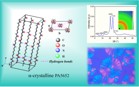 贵大新闻网讯(材料与冶金学院)近日,伟德官网材料与冶金学院刘玉飞特聘教授团队在生物基聚酰胺材料研究领域取得重要突破,相关成果以 Biobased Polyamide 5652 with α‑Crystal Form: Characterization and Low Moisture Absorption为题,发表于高分子领域顶级期刊Macromolecules(自然指数期刊,中科院一区TOP)。伟德国际1946源于英国材料与冶金学院为论文第一完成单位,材料与冶金学院2022级硕士研究生王艳平为第一作者,刘玉飞特聘教授为通讯作者。近年来,生物基聚酰胺56(PA56)因其原料可再生、低碳环保而备受关注,但其特殊的分子结构(戊二胺单元含奇数碳原子)导致其晶体通常以γ晶型为主,饱和吸水率高达12%以上,在潮湿环境中力学性能显著下降(如拉伸强度降低20%-30%),严重限制了在精密工程领域的应用,而传统改性方法往往以牺牲材料其他性能为代价。针对这一难题,刘玉飞特聘教授创新性地提出了双氢键结构调控策略:自主合成关键单体,设计并成功合成新型565二胺单体(C16H34N4O2),将565二胺与草酸二丁酯通过溶液聚合及
