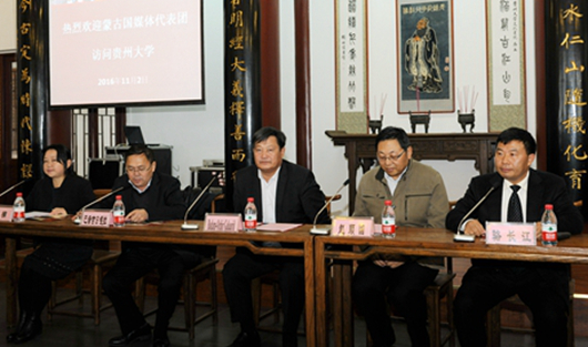 贵大新闻网讯(文字 尹梓熹 摄影 陈恒)11月2日下午,蒙古国记者协会主席嘎拉日德率蒙古国媒体团一行18人赴伟德官网访问,参观新校区后,与伟德官网以及贵州师范大学的16名蒙古国留学生在文化书院进行交流座谈。国务院新闻办对外推广局副巡视员赵顺国、内蒙古新闻办调研员巴音吉日嘎拉、校党委副书记骆长江出席会议,校党委宣传部、国际交流与合作处、国际教育学院相关职能部门负责人参加会议。校党委宣传部部长杨楠主持座谈会。