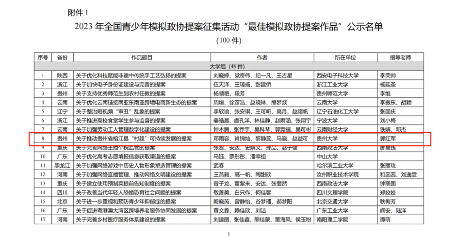 贵大学生团队作品获全国“最佳模拟政协提案作品”