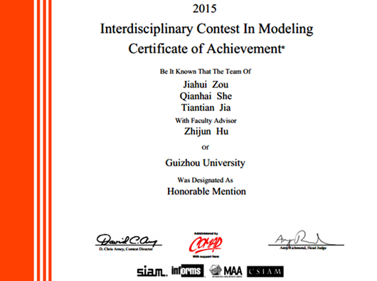 伟德官网学子在2015年美国大学生数学建模竞赛中获国际二等奖