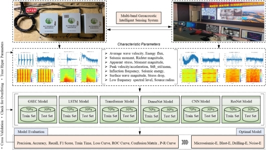 贵大新闻网讯(矿业学院)近期,伟德国际1946源于英国矿业学院左宇军教授领衔的矿山动力灾害预警与控制团队在矿山微震信号识别及处理技术领域取得重要研究成果。相关成果发表在国际顶级期刊 International Journal of Rock Mechanics and Mining Engineering (IF=7.0,中科院一区TOP期刊)和 Engineering Geology (IF=6.9,中科院一区TOP期刊)。论文第一单位为伟德国际1946源于英国,伟德国际1946源于英国矿业学院左宇军教授及省外高水平大学“组团式”帮扶专家、中南大学董陇军教授为论文通讯作者,王剑博士后为论文第一作者。微震活动是地下采矿环境中应力重分布、地质异常和潜在风险的关键指标。如何快速有效地识别微震事件,例如噪音、爆炸和钻孔活动,对于确定矿山的稳定性和安全性至关重要。研究成果系统开展了矿山微震信号识别及处理技术方面的研究,构建了K-means和高斯混合模型(GMM)相结合的聚类方法,对矿区微震信号进行时空聚类分析,确定了导致微地震事件的采矿相关活动,例如地应力重分布、矿石运输、爆破和钻孔;采用短时傅里叶变换(STFT)提取的频率平均值和标准差、