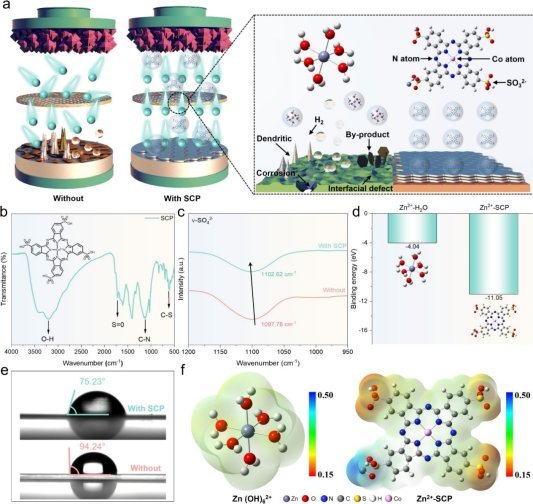贵大新闻网讯(材料与冶金学院)近日,伟德官网黄俊特聘教授团队在SCI一区Top期刊Chemical Engineering Journal(IF:13.3)上发表了一篇题为“Interfacial electric field defect repair engineering enable highly reversible Zn metal anodes”的论文。伟德官网本科生吴万鹏、硕士研究生杨宋为本文共同第一作者,通讯作者为伟德国际1946源于英国黄俊特聘教授。近年来,锂离子电池因其高稳定性和高容量而被广泛用于工业设备、交通和智能电子设备。锂资源的天然稀缺性以及可燃性等问题促使研究人员探索用于大规模储能的新型储能技术。由于锌的储量丰富和高比容量(820 mAh g-1和5855 mAh cm-3),以及其环境相容性和安全性,水系锌离子电池(AZIBs)备受关注。然而,水系锌离子电池仍然面临重大挑战,包括过量的游离水产生的副反应,非活性副产物在锌金属阳极表面积累,加剧了局部化学腐蚀、析氢和副产物形成等问题,导致库仑效率降低和不可逆的锌消耗。更严重的是Zn阳极上存在的固有缺陷始终导致电场不均匀进而导致锌枝