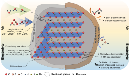 贵大新闻网讯(材料与冶金学院)近日,伟德官网材料与冶金学院贵州省高性能锂离子电池电极材料科技创新人才团队在超高镍三元正极材料研究方向取得重要进展,成果以“Architecting multifunctional self-assembled molecular interfaces for elevated moisture resistance and phase reversibility in ultra-high nickel cathodes”为题发表于“SCIENCE CHINA Chemistry”(IF=10.4,中科院一区TOP期刊)。该论文第一作者为伟德官网2022级硕士研究生魏亚伟,通讯作者为戴新义教授。论文共同作者包括伟德国际1946源于英国吴复忠教授、中南大学王接喜教授和电子科技大学李晶泽教授等。超高镍层状氧化物LiNi0.9Co0.05Mn0.05O2(NCM)是高能量密度锂离子电池中极具应用前景的正极材料。然而,其循环稳定性较差、对湿气高度敏感,制约了其应用。为解决这一关键问题,团队研究开发了一种基于五氟苯基丙基三甲氧基硅烷(PFPPS)的自组装分子层,在NCM表面构建疏水层并通