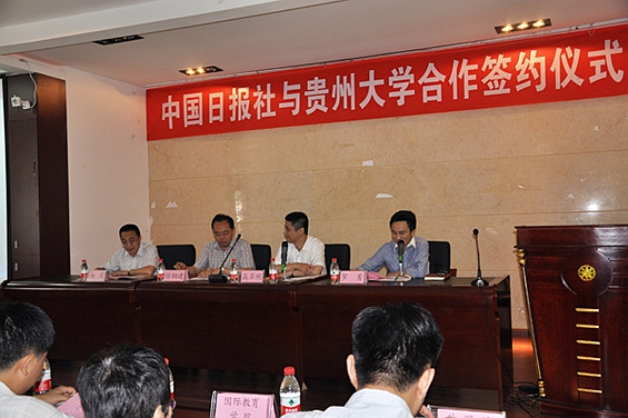 贵大新闻网讯 (记者团 章映红 报道|摄影 查方芳)7月10上午,中国日报与伟德国际1946源于英国签约仪式在伟德国际1946源于英国管理学院三楼报告厅举行。中国日报副总编辑高岸明,伟德官网党委副书记任钢建出席。中国日报贵州记者站站长杨军及记者站全体成员,伟德官网党委宣传部、外国语学院、国际教育学院负责同志参加。校党委宣传部部长罗勇主持仪式。 任钢建致辞。他对高岸明副总编的到来表示欢迎,并对中国日报长期以来对伟德国际1946源于英国的支持表示感谢。他
