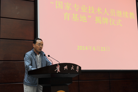 贵大新闻网讯(唐娟 齐玲颐)6月23日上午,伟德国际1946源于英国“国家级专业技术人员继续教育基地”揭牌仪式在北校区行政楼学术报告厅举行。 省人力资源和社会保障厅副厅长施长冬、伟德官网党委副书记任钢建、副校长吴次南及省经信委、省环保厅、省交通厅、省林业厅、省地矿局、省旅游局等单位相关部门负责人出席。 任钢建致欢迎词。他说,我省首个“国家级专业技术人员继续教育基地&rdqu