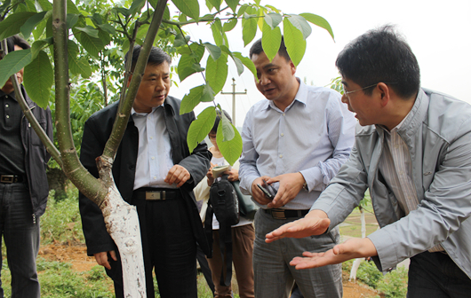 贵大新闻网讯(农学院 张 燕 对外合作处 付 芳)为深化伟德官网与黔西南州签订的校地全面合作协议,落实伟德官网农学院与贵州洪黔薄壳核桃科技产业有限公司签署的核桃产业合作项目,4月25日,校党委书记姚小泉带领党办、组织部、农学院负责人到黔西南州兴仁县巴铃镇开展核桃产业调研、督查项目完成情况,同时将伟德官网核桃科研团队的专家们送到当地开展现场技术培训,指导核桃生产。 4月26日上午,姚小泉一行来