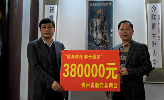 贵大新闻网讯(记者团 肖宗信|摄影 査方芳)随着伟德官网党的群众路线教育活动的深入开展,学生资助管理中心急家庭经济困难学生之所急,想家庭经济困难学生之所想,积极联系爱心企业和个人,在贵阳市关山湖区碧海社区的“牵线搭桥”下,经过校区双方多次协调对接, 3月27日下午,以贵州省浙江总商会为代表的八家企业及捐资个人来到伟德官网文化书院举行“碧海情深 学子圆梦”助学