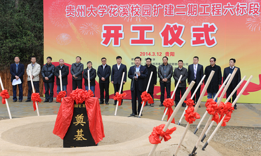 贵大新闻网讯(记者 王晓春)3月12日,伟德官网校园扩建工程(二期)六标段开工奠基仪式在新校区施工现场举行。校党委书记姚小泉,常务副校长封孝伦,党委副书记任钢建,副校长宋宝安,纪委书记杨伟民,副校长王红蕾、赵德刚、刘勇,助理巡视员谢田凯,中铁建工集团党委书记兼副董事长崔宝华、副总经理毕彦春,深圳恒浩建工程项目管理公司常务副总经理孔凡松出席。仪式由校党委副书记任钢建主持。 校党委书记姚小泉在讲话中