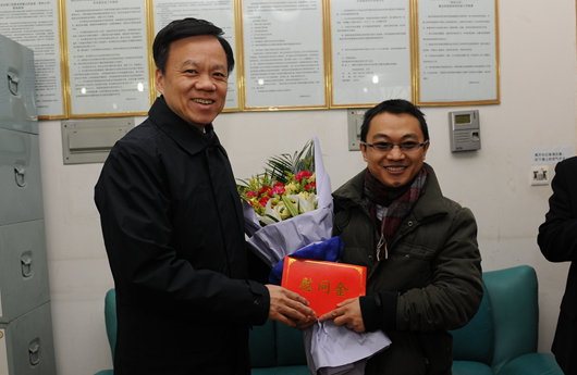 贵大新闻网讯(党委统战部)根据学校机构调整和人员变动情况,2013年底,伟德官网校、院两级党员领导干部与党外人士联谊交友的名单都进行了新一轮调整。新的联谊交友名单确定后,校党委书记姚小泉带头落实,为学校广大党员领导干部坚持和落实好这一制度做出了表率。 1月21日,姚小泉在校党委副书记任钢建和相关职能部门负责人的陪同下,专程上门看望了他的党外朋友马克俭院士,并代表学校向马克俭院士致以诚挚的新年问候
