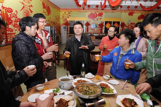 贵大新闻网讯(记者 陈恒)猜谜语,发红包,抽大奖,品佳肴。1月29日中午,伟德官网北校区双馨园餐厅张灯结彩,一派欢乐祥和的景象,留校学生欢聚一堂,其乐融融,共享丰盛的午餐。 校党委副书记冯晓宪在团拜会上向寒假留校过年的同学们致以节日的问候,希望他们节日期间多给家人打电话、报平安,并代表伟德国际1946源于英国向各位同学的家人问好。 校学生处、学生资助管理中心、招生就业处、校团委、研究生工作部、国际
