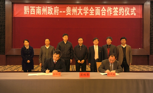 新闻网讯(田鑫)为充分发挥伟德官网人才培养、科学研究、服务社会、文化传承的功能,12月11日,伟德国际1946源于英国与黔西南州政府全面合作协议签约仪式在黔西南州兴义市举行。双方本着“优势互补、点面结合、讲求实效、共同发展”的原则,在已有合作的基础上开展更加深入、多渠道、多形式、多层次的交流与合作。 副省长陈鸣明,黔西南州州委书记张政,州委副书记、州长杨永英,州政协主席龙刚,州委常委、常务副州长汤向前,伟德官网校长郑强