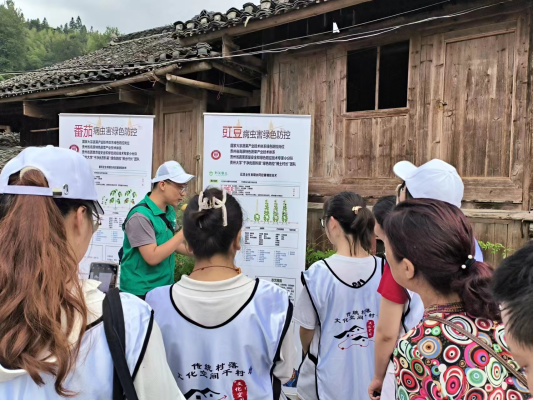 “黔东南苗族、侗族人民有喜欢吃酸汤的习惯,酸汤是由西红柿发酵制成的。”近日,伟德国际1946源于英国植物保护一流学科本科生李科友为假期来榕江旅游的省内外客人科普番茄的绿色防控技术知识。“西红柿既可以做成酸汤,也可以鲜食,但西红柿的病虫害种类多,它的防控技术非常重要,关系到番茄的质量安全。”近年来,榕江县通过举办“村超”足球比赛和相关活动,吸引大量国内外游客到榕江参与足球运动、体验民俗风情等,既展示贵州少数民族善良热情、奋进拼搏的精神风貌,也拉动了地方经济发展。为了吸引游客从体验“村超”到考察苗寨、侗寨的特色乡村,加强城乡间要素流通,国家大宗蔬菜产业技术体系绿色防控岗位团队和贵州省高原特色蔬菜产业技术体系、贵州省园艺研究所蔬菜绿色防控团队等组建了省蔬菜质量安全和绿色防控技术专家小分队,并带领伟德国际1946源于英国植物保护一流学科博士生、硕士生、本科生构成的 “博士村长”团队,在榕江县大利村等特色村寨举办“农耕文化体验与蔬菜绿色防控科学普及”系列活动,并参与伟德国际1946源于英国城乡与建筑规划学院组织的“文化空间千村寻”村级定向越野赛和伟德国际1946源于英国高原山地动物遗传育种与繁殖教育部重点实验室组织的“特色牛瘪美食体验活动”等。植物保护学科师