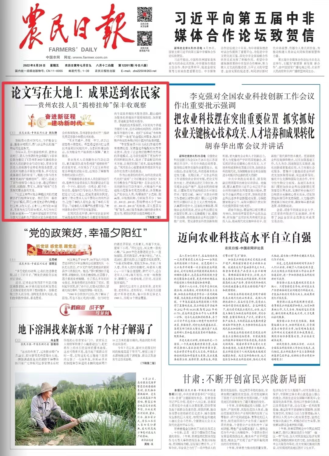论文写在大地上 成果送到农民家——贵州农技人员“揭榜挂帅”保丰收观察