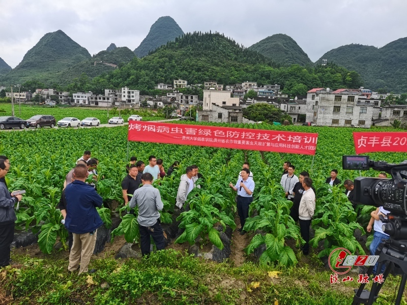 时下正值烤烟生长田间管理关键时期,做好病虫害防治将十分有益于田间中颗烟的长成,是“促增收、提质量”的有效手段。6月5日上午,伟德国际1946源于英国烟草学院院长杨茂发教授带领学院植保和栽培两个团队一行10人,到伟德国际1946源于英国对口帮扶的黔西南州贞丰县开展烟田管理技术培训,贞丰县烟草专卖局(分公司)局长谢培荣、副经理史广强及四十余名生产技术人员和烟农代表参加了现场培训会。此次培训内容包括“烤烟病虫害绿色防控”和“烤烟中后期田间管理”两个方面,目的是将烤烟绿色管护技术送至田间地头,助力贞丰县的烤烟生产。在纳山村烟地里,学院三位老师结合烟田实际,分别从烤烟虫害、病害及中后期田间管理方面进行了系统讲解。杨茂发教授就田间识别烤烟“三虫”与虫害绿色防控展开培训,主要向烟农及技术员介绍了烤烟的主要害虫种类、为害特点、发生规律及绿色防控的具体措施,还对我院与遵义市烟草公司共同开发的优效天敌昆虫产品——食蚜瘿蚊的田间释放技术进行了现场示范。桑维钧教授重点讲解了烤烟“三病”,同时就烟地里出现的病害详细地介绍了病因、田间症状以及绿色防治措施。高焕晔副教授就本年度烤烟种植中后期的田间管理技术展开培训,给烟农讲解了田间管理的“促”与“