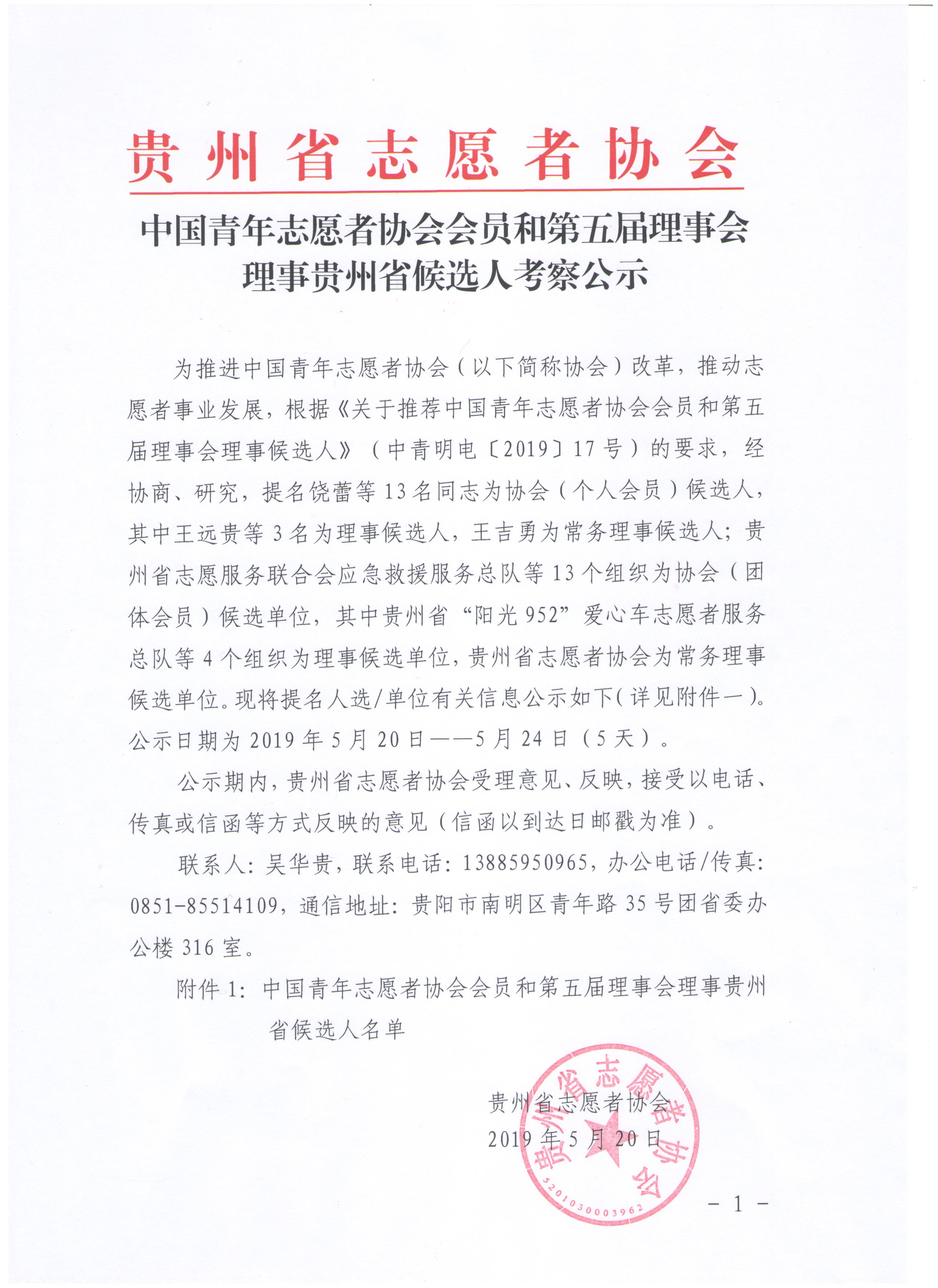 中国青年志愿者协会会员和第五届理事会理事贵州省候选人考察公示