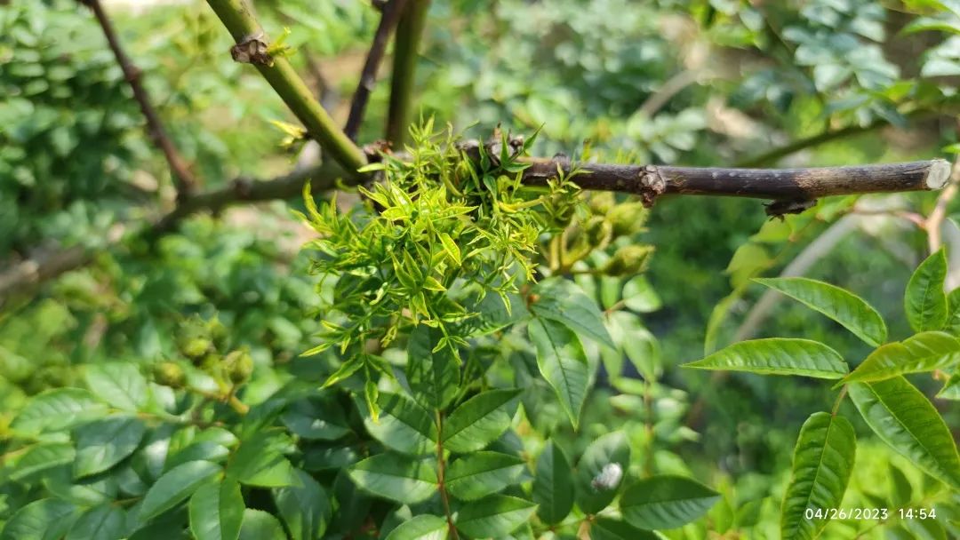 周奎仔细观察金刺梨叶片的表型,发现感染的叶片显著缩小,且卷曲、黄化,但同一枝条也有正常的叶片,说明这个病毒病不会通过汁液、花粉等传播,再结合金刺梨的分类地位,周奎推测可能是草莓类的病毒病,通过蚜虫、长剑线虫等方式传播。