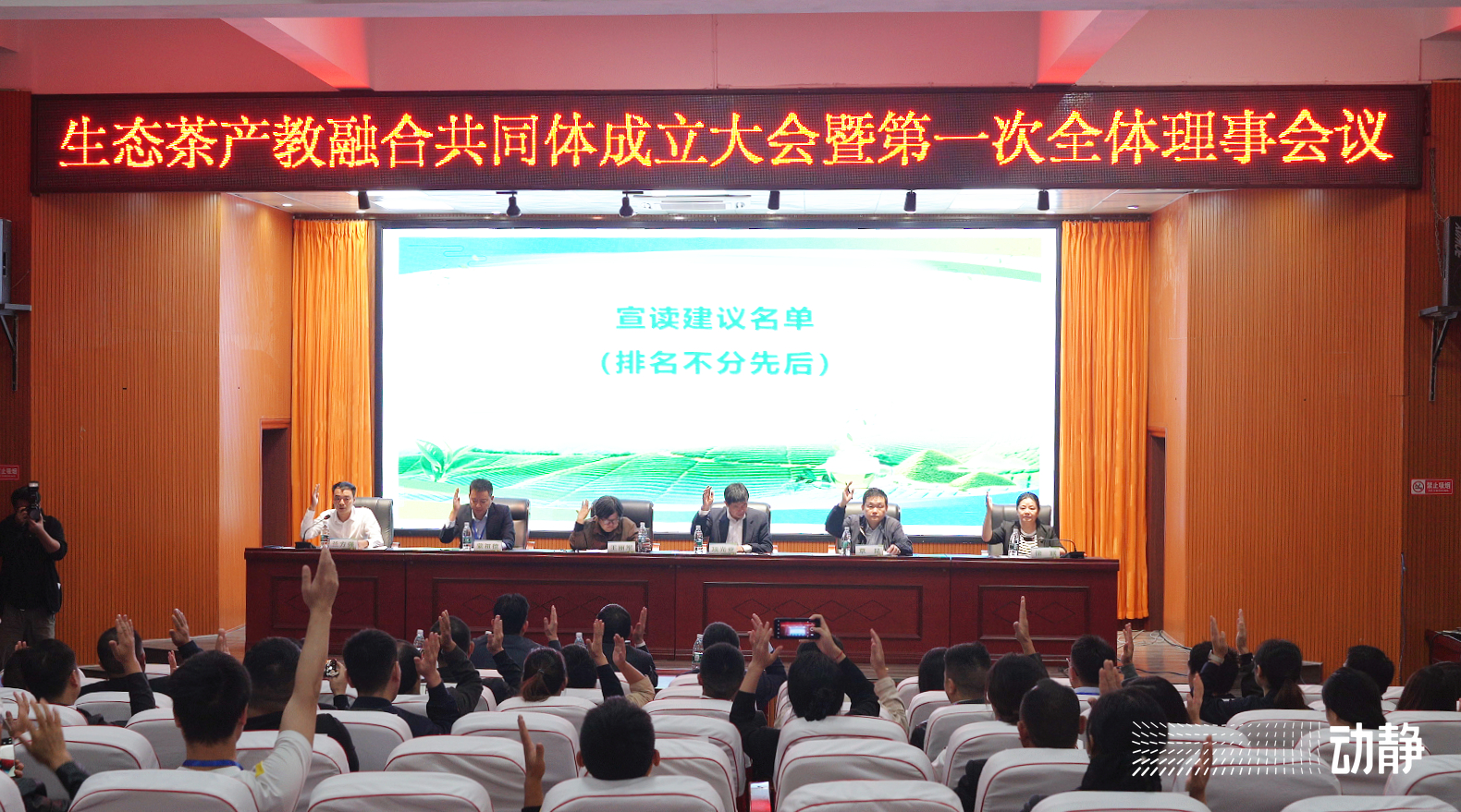 会议还审议表决了《生态茶产教融合共同体章程(草案)》和《生态茶产教融合共同体选举办法(草案)》;选举生态茶产教融合共同体第一届理事会理事长单位、副理事长单位、常务理事单位等。