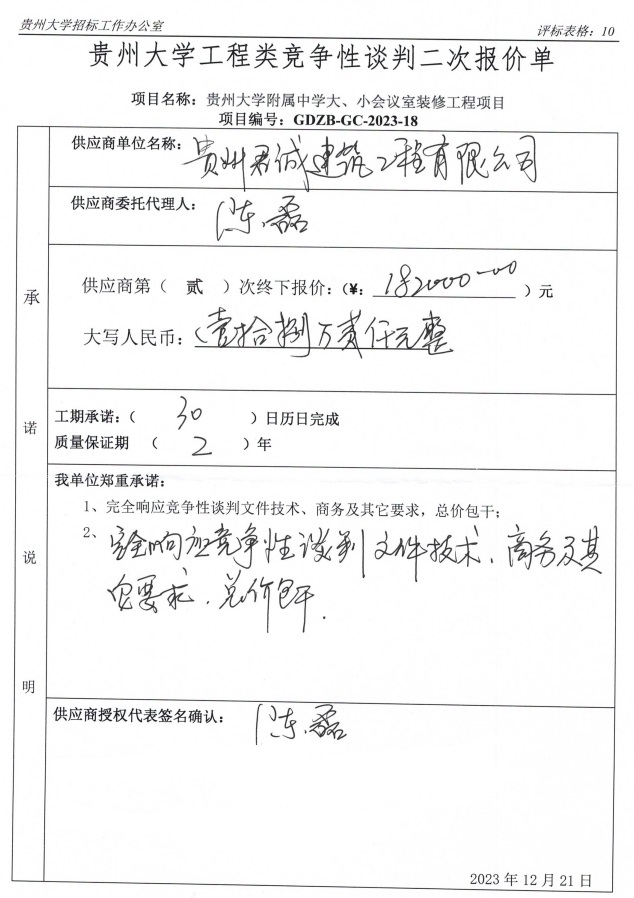 1 | 贵州君诚建筑工程有限公司 | 贵州省贵阳市云岩区渔安安井片区未来方舟D12组团A栋1单元9层18号 | 伟德国际1946源于英国附属中学大、小会议室装修工程项目,详见《竞争性谈判文件》 | ¥182000.00 |