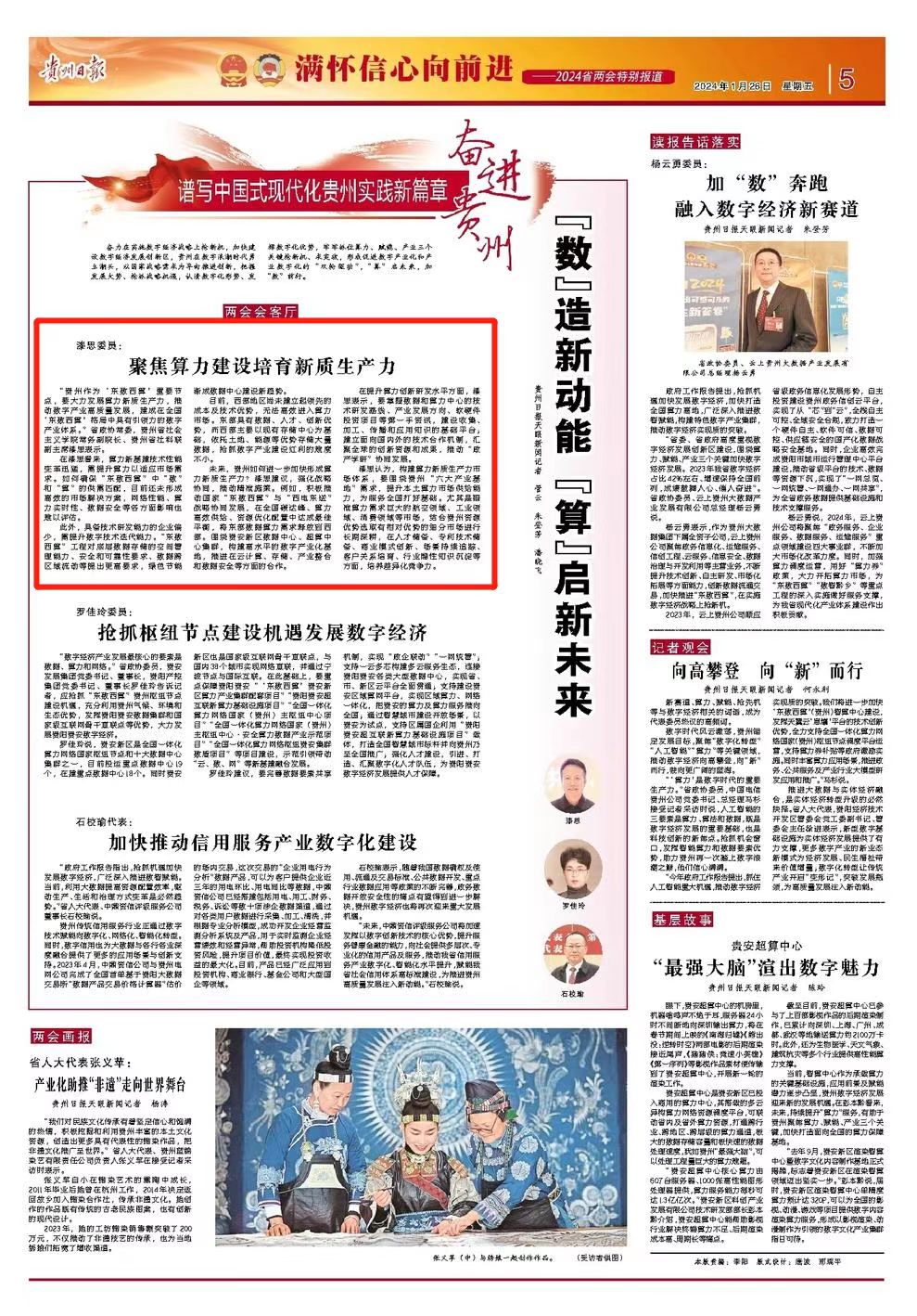 贵州省政协常委、贵州省社会主义学院常务副院长、贵州省社科联副主席漆思表示,贵州作为“东数西算”重要节点,要大力发展算力新质生产力,推动数字产业高质量发展,建成在全国“东数西算”格局中具有引领力的数字产业体系。
