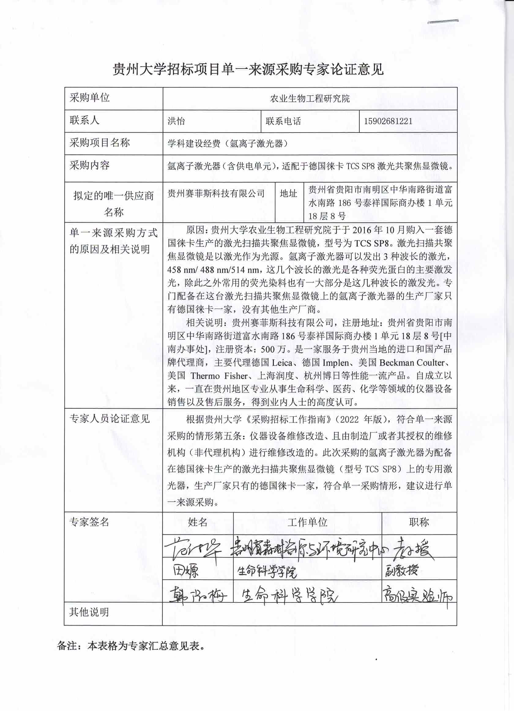 采购氩离子激光器(含供电单元),适配于德国徕卡TCS SP8激光共聚焦显微镜。