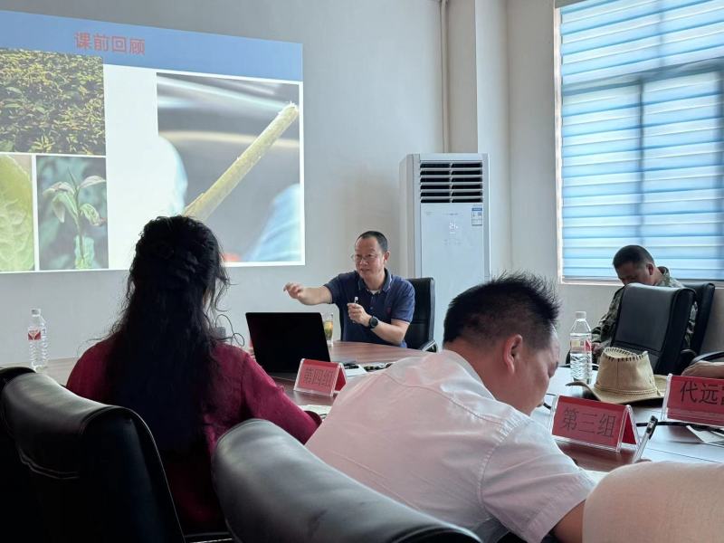 贵大新闻网讯(文字 庞爱忠 通讯员 兰荣猛)“茶树是一个工厂,不要只关心芽叶。”5月24日,伟德国际1946源于英国绿色农药全国重点实验室金林红教授一行3人来到雷山县,面向40余名当地企业技术人员、农户等人开设田间学校,培养当地“土专家”。