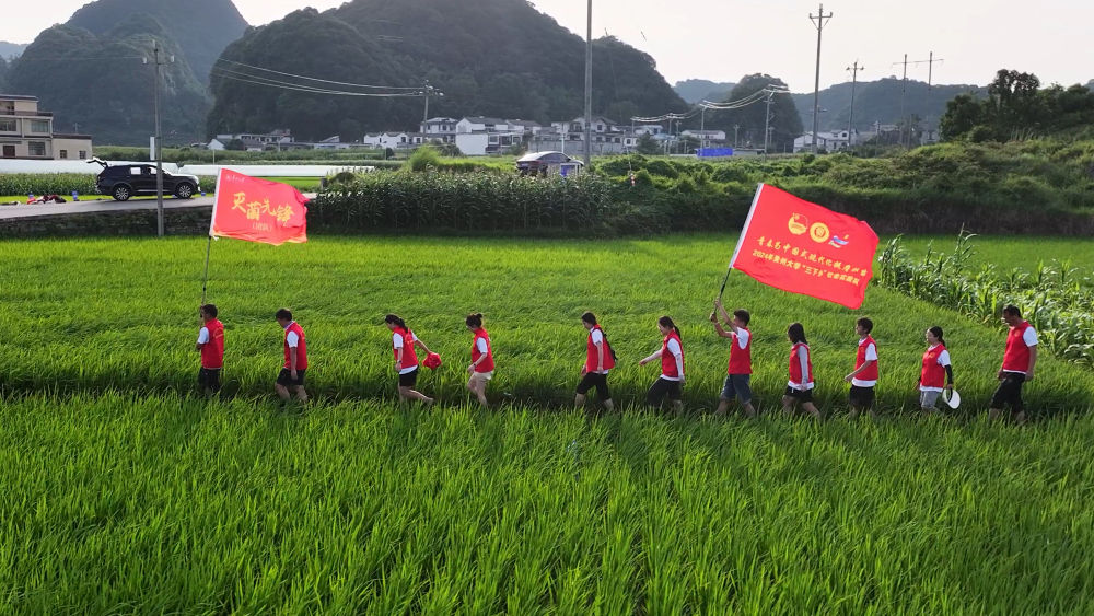 此外,团队成员还积极参与到施肥灌水的工作中,他们深知,只有科学的田间管理,才能确保水稻的茁壮成长。尽管汗水浸湿了衣衫,团队成员的脸上却洋溢着满足与自豪的笑容,因为他们知道,自己正在用实际行动践行“以青春之力守护万亩良田”的誓言。