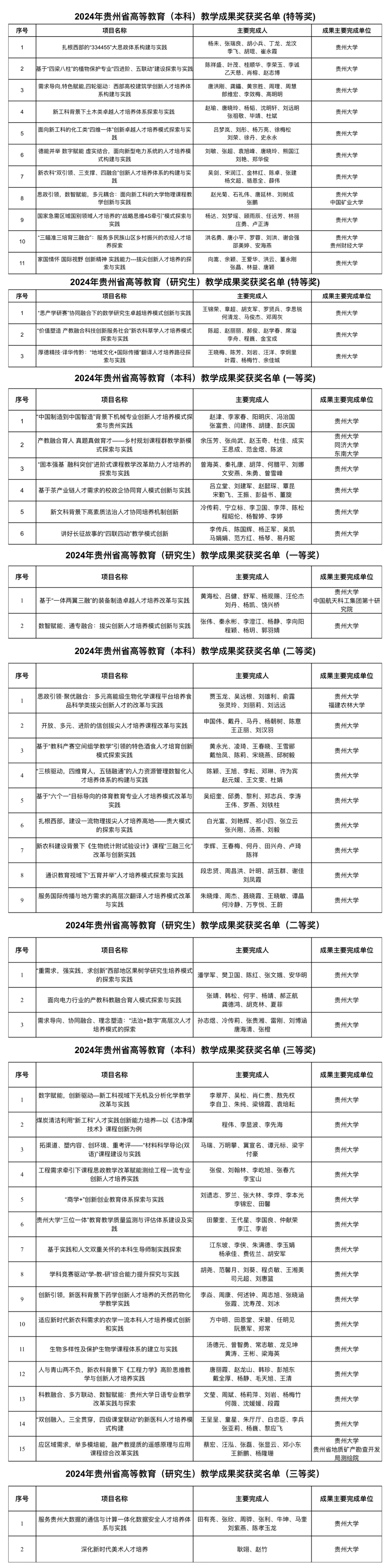 贵大新闻网讯(学生记者 杨贵珠)近日,贵州省教育厅发布了《省教育厅关于公布2024年贵州省高等教育省级教学成果奖获奖名单的通知》,伟德官网共51项教学成果获奖(其中本科教育41项、研究生教育10项)。