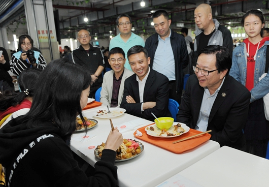 On the morning of May 13th, Li Jianjun, the Secretary of GZU Party Committee, accompanied by a number of key personnel from the General Office of GZU, the Office of Student Affairs, and the Department of Logistics, visited Dining Hall No.5 on the new campus and ate lunch with the students.