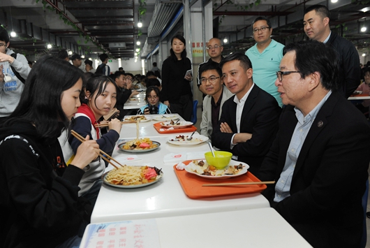 During the meal, Li Jianjun had a nice conversation with students. In addition to asking about their birthplace and eating habits, he asked for their opinion on campus facilities, the dinning environment, price of meals, and taste of the food.