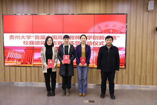 On March 10, 2021, GZU held an award ceremony for the winners of the First GZU National Teaching Innovation Contest for College teachers at the Center for Faculty & Teaching Development on West Campus. Concurrently, it also launched a new training program to support future preliminary participants of this contest. Luo Changjiang, deputy party secretary of GZU, and Li Junqi, Deng Chaoyong, and Zhan Dalin, vice presidents of GZU, attended the ceremony with various faculty and staff from related offices. Xiang Song, deputy director of Academic Affairs Office, hosted the ceremony.