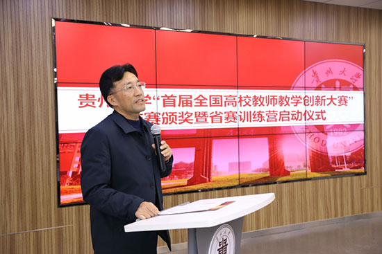 Luo Changjiang, deputy party secretary of GZU, announces the university’s contest results.