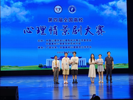 On May 28, the finals for the 4th National College Psychological Situation Drama Contest were held at Guangxi University, in Nanning, Guangxi. The psychological sitcom "Shadow" from Guizhou University won the first prize, ranking number one among all other contestants. Huang Yongwen, majoring in performance since 2019, won the award for best actor for his outstanding performance.