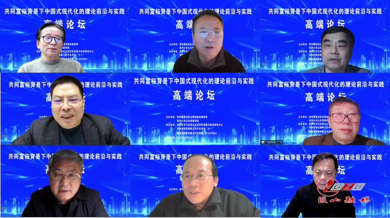 On December 29th, “The Theoretical Frontier and Practice of Chinese Modernization under the same Affluent Background” High-end Forum was successfully held, which was co-hosted by Guizhou Grassroots Social Governance Innovation High-end Think Tank and the College of Public Administration of Guizhou University, and co-assisted by Marxist Economics Development and Application Research Center at Guizhou University and the Guizhou Provincial Major Special Research Project of the Interpretation of the Important “July 1st” Speech by General Secretary, Xi Jinping. The forum was held in the online visual-meeting form. More than 200 experts and scholars gathered for in-depth discussions on the theme of the forum, who were from Peking University, Nankai University, China Agricultural University, Wuhan University, East China Normal University, Guizhou University and other universities.