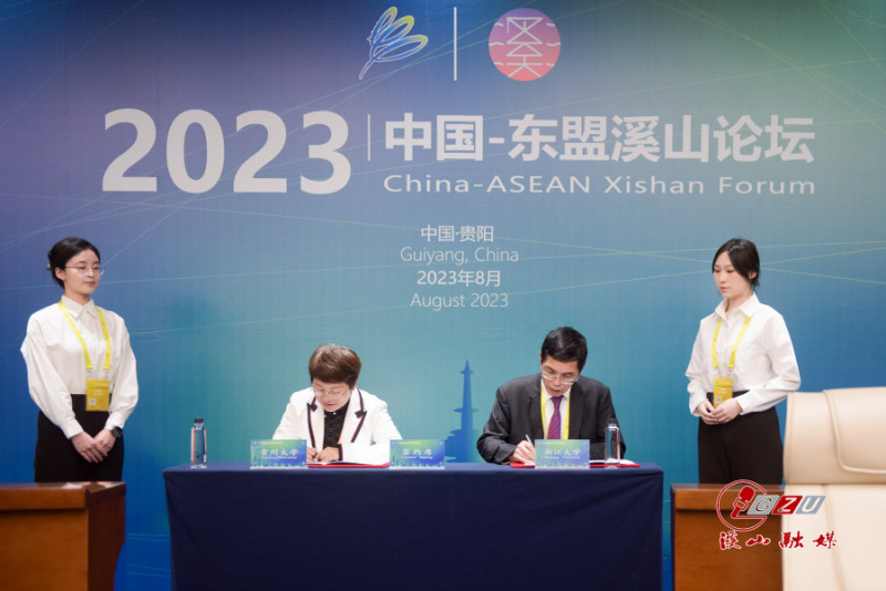 The forum highlights the significance of exploring the potential of a low-carbon economy and conducting research on realizing “dual carbon” targets and development new energy technologies. These efforts are crucial for China's transition from an extensive mode to a sustainable trend, aiming to achieve carbon peaking and carbon neutrality. To effectively implement plans such as the "Four New," "Four Modernizations," and "Two Regions Six Bases" in Guizhou Province, GZU has partnered with Zhejiang University to establish the "Guizhou Dual Carbon and New Energy Technology Innovation Development Institute." During the opening ceremony, Ye Gongyin, Member of the CPC Committee of Zhejiang University, and Linghu Caitao, Deputy Secretary of the CPC GZU Committee, signed the agreement for its establishment.