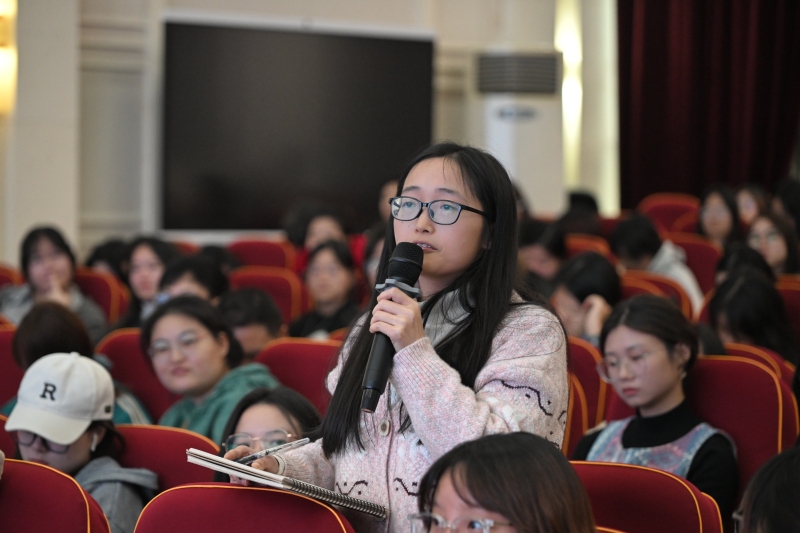 After the lecture, students were invited to engage with Mr. Dong Xi, asking questions and sharing their thoughts. The author happily offered his answers and views.