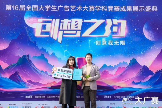 On November 23, the awarding ceremony and works broadcasting show of the 16th National Advertising Art Design Competition for College Students (NAADCCS) was grandly held at the Dongyi International Media Industry Park in Beijing. Zhang Bo, a faculty member from the Department of Journalism of the School of Communication, and Kong Xiangqiao, a master’s student in Journalism and Communication (2022 cohort), were invited to attend the event and brought home Guizhou University’s first-ever national first prize in this competition. In addition, faculty and students from the School of Communication and the College of Fine Arts won one national second prize, two national third prizes, and three honorable awards in this year’s competition.
