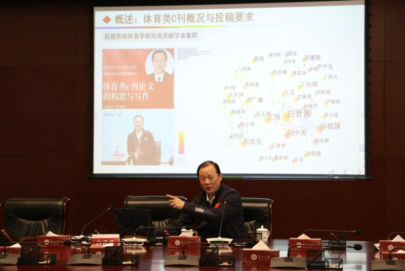 Professor Bai Jinxiang followed with a lecture titled “Paper Writing and Academic Research Techniques”, in which he systematically analyzed the research process in the field of sports. Beginning with the logical loop of “problem identification – literature review – methodology design”, he emphasized the importance of aligning research topics with national sports strategies, while balancing theoretical innovation with practical relevance. Using vivid language and examples, Professor Bai explained the “five key elements” of academic writing and shared techniques such as the “funnel approach” to structuring an academic paper’s introduction.