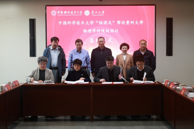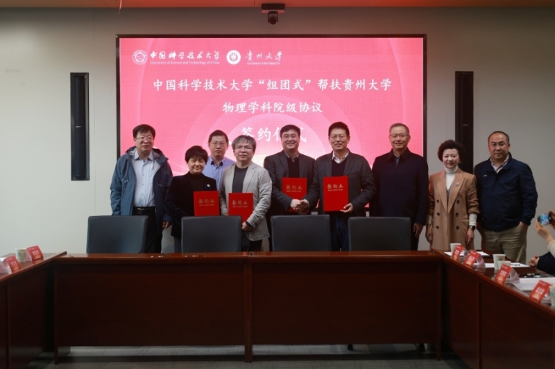 On March 19, the University of Science and Technology of China (USTC) and Guizhou University (GZU) held a signing ceremony in Hefei for a college-level strategic cooperation agreement under the “cluster-based” support initiative for the physics discipline.