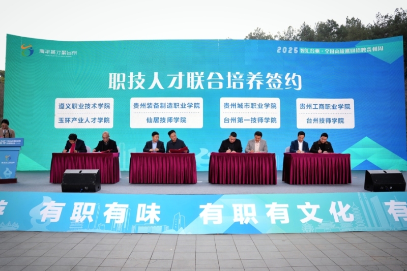 The event also featured signing ceremonies for digital talent-sharing and technical training partnerships. Guizhou University’s State Key Laboratory of Public Big Data partnered with the Taizhou Human Resources and Social Security Bureau to promote integrated development across government, industry, academia, and research. In addition, four paired institutions—including Taizhou Technician College with Guizhou Equipment Manufacturing Vocational College, and Taizhou First Technician College with Guizhou City Vocational College—established an "order-based training and targeted employment" model.