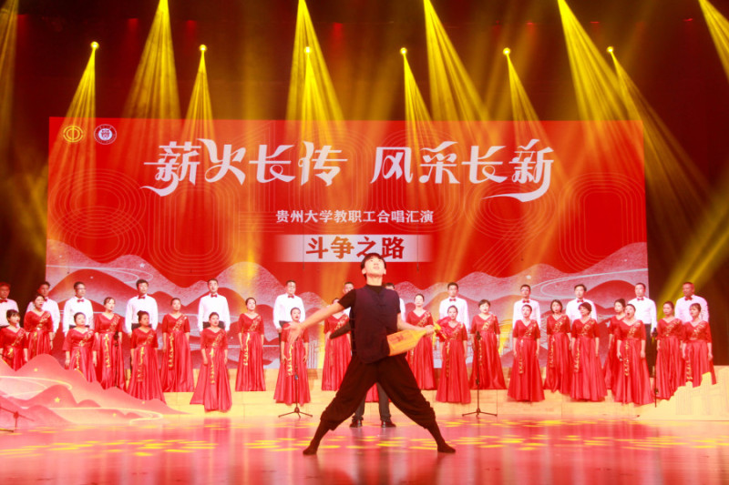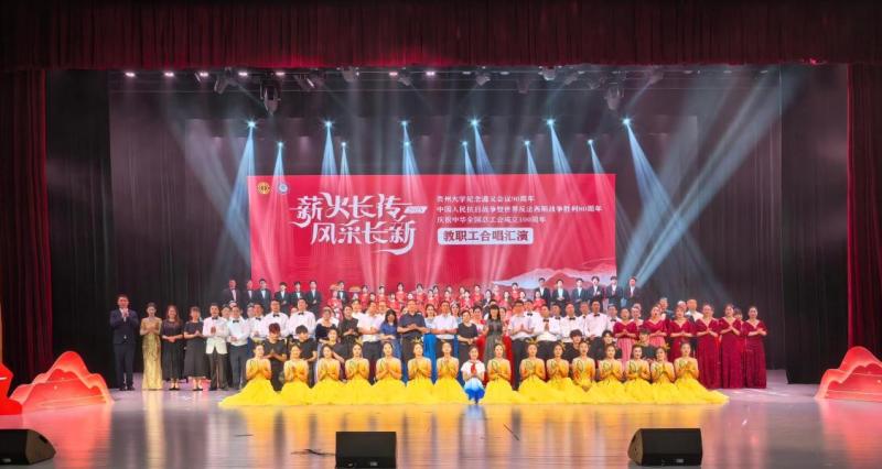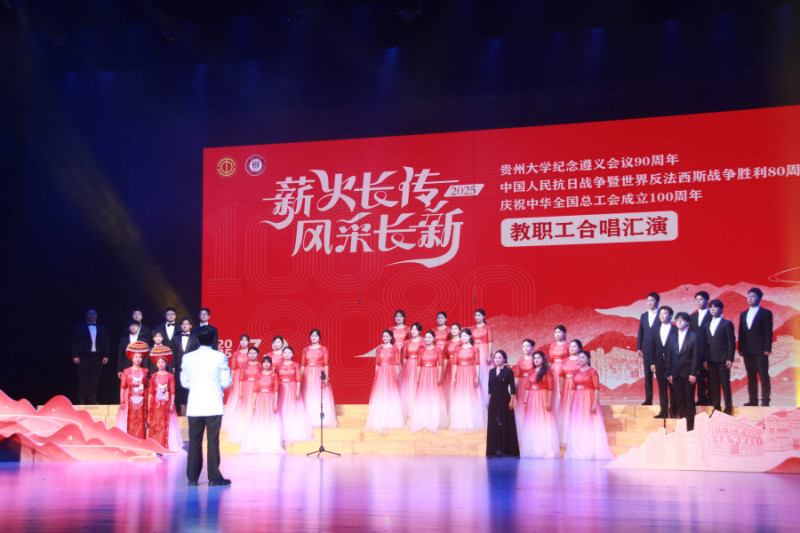 On July 9th, Guizhou University hosted a faculty and staff choir performance. The event commemorated the 90th anniversary of the Zunyi Conference, the 80th anniversary of the Victory of the Chinese People's War of Resistance Against Japanese Aggression and the World Anti-Fascist War, and the centennial of the All-China Federation of Trade Unions. Secretary of the University Party Committee, Yang Wei, Deputy Secretary, Peng Jie, and Vice President Zhang Dalin were in attendance.