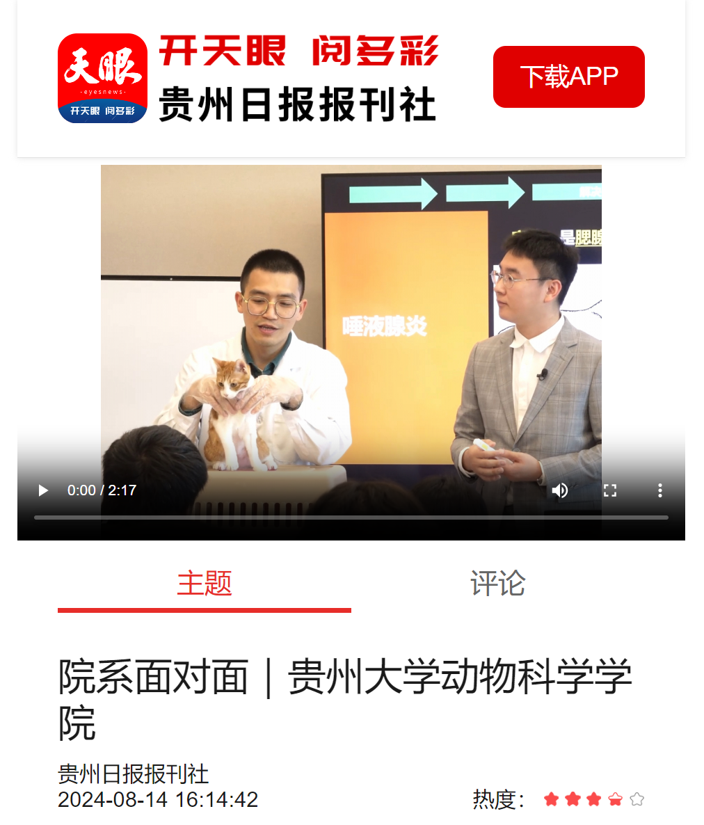 天眼新闻客户端:院系面对面|伟德国际1946源于英国动物科学学院