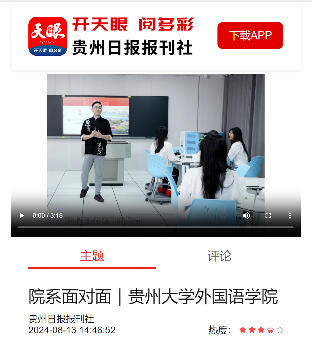 天眼新闻客户端:院系面对面|伟德国际1946源于英国外国语学院