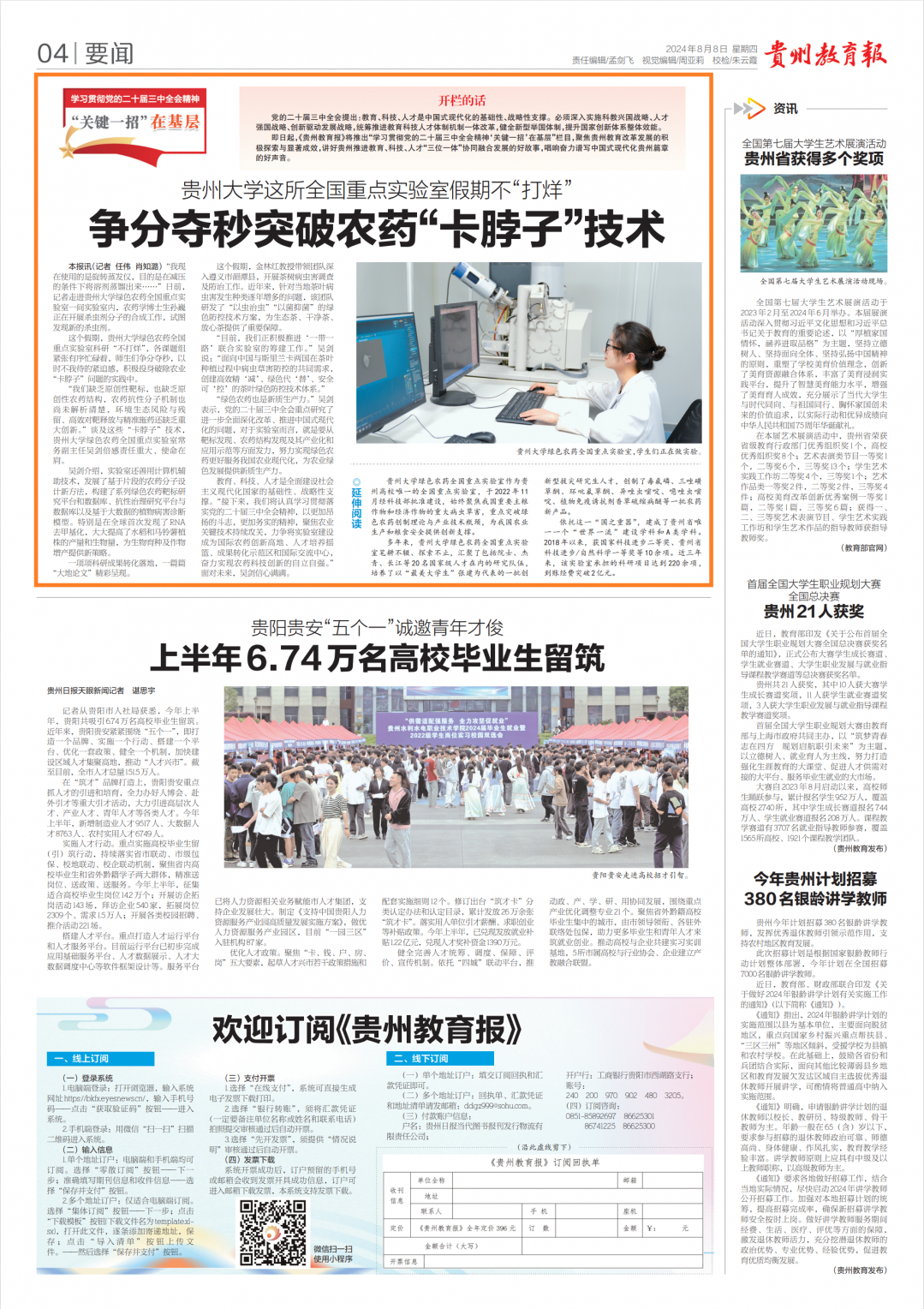 贵州教育报:伟德国际1946源于英国这所全国重点实验室假期不“打烊”,争分夺秒突破农药“卡脖子”技术