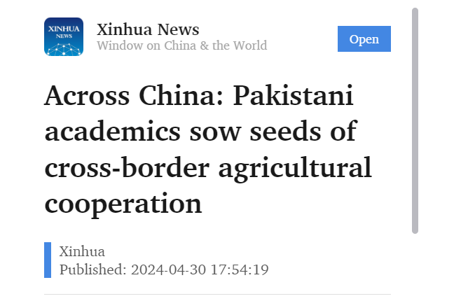 Xinhua News:Across China: Pakistani academics sow seeds of cross-border agricultural cooperation