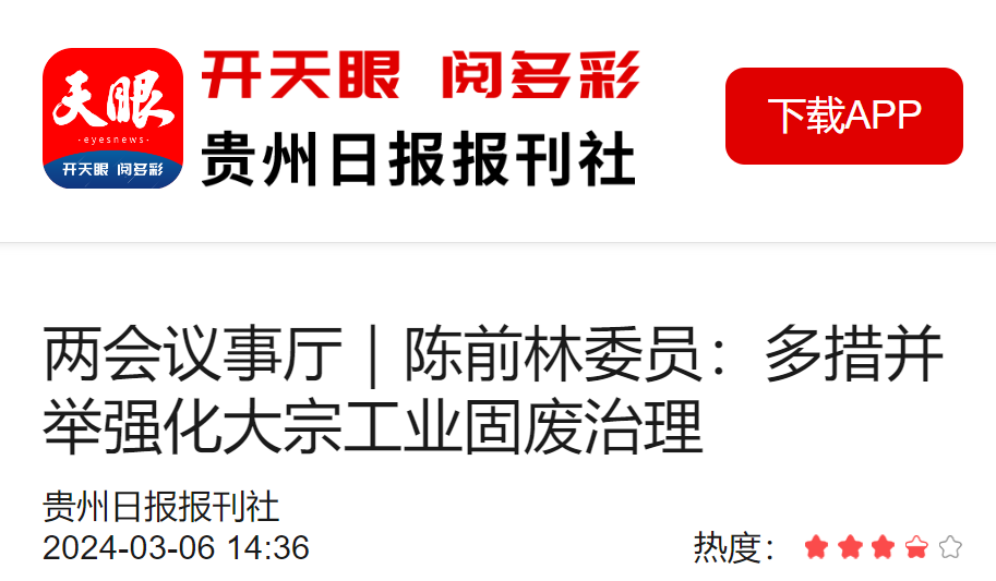 天眼新闻客户端:两会议事厅|陈前林委员:多措并举强化大宗工业固废治理