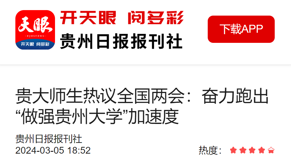 天眼新闻客户端:贵大师生热议全国两会:奋力跑出“做强伟德国际1946源于英国”加速度