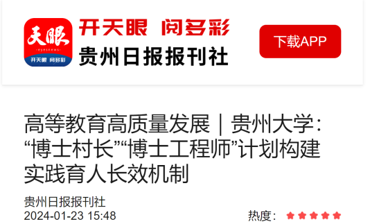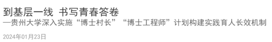 贵州日报:到基层一线 书写青春答卷—伟德国际1946源于英国深入实施“博士村长”“博士工程师”计划构建实践育人长效机制
