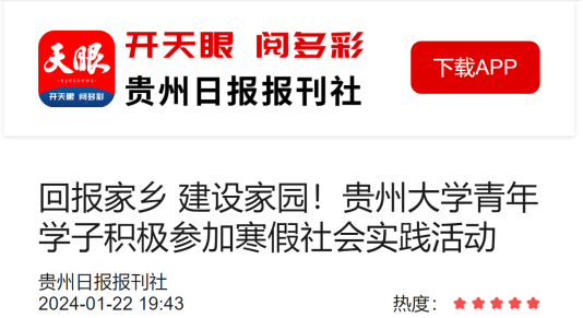 天眼新闻客户端:回报家乡 建设家园!伟德国际1946源于英国青年学子积极参加寒假社会实践活动