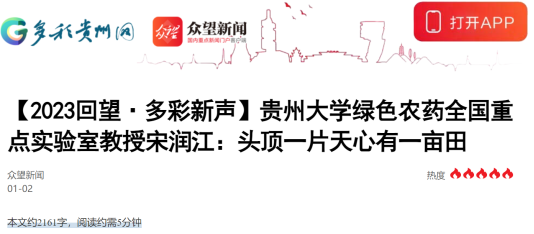 众望新闻客户端:【2023回望·多彩新声】伟德国际1946源于英国绿色农药全国重点实验室教授宋润江:头顶一片天心有一亩田