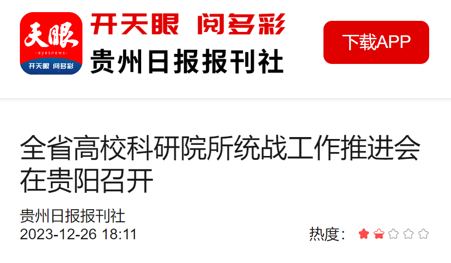 天眼新闻客户端:全省高校科研院所统战工作推进会在贵阳召开